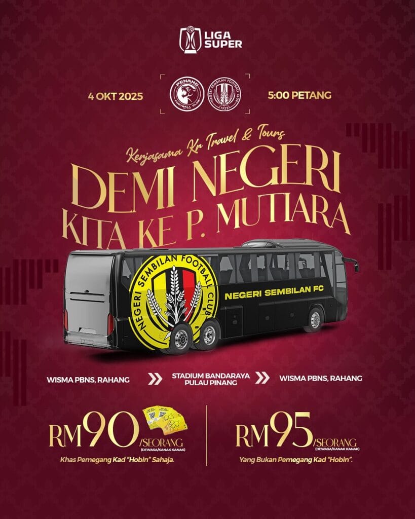 Where are you heading this weekend, Jang fans? If you’ve got no plans, let’s make our way to Penang together in support of The Jangs! Negeri Sembilan FC will face Penang FC in an exciting Liga Super 2025/26 clash at the iconic Stadium Bandaraya, Penang, this Saturday.