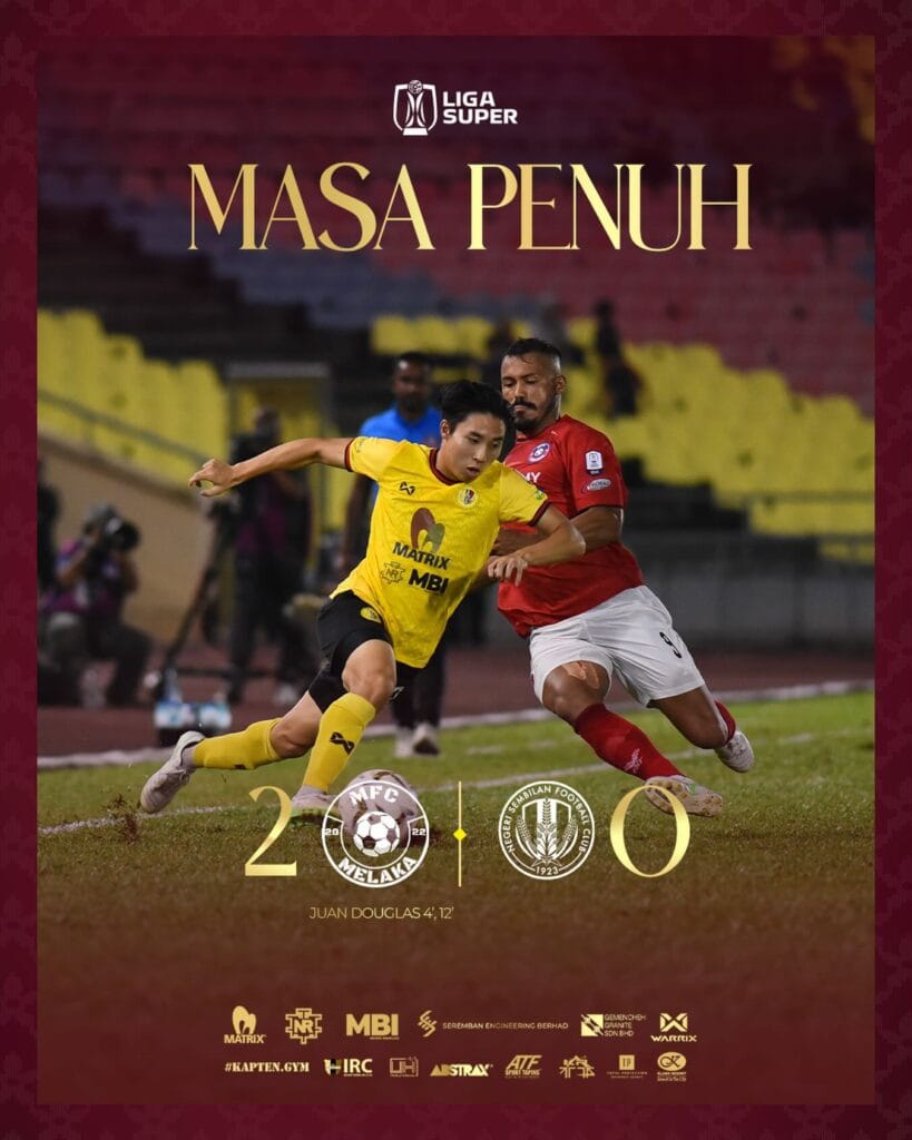 The home side struck early, with Brazilian import Juan Douglas Da Silva netting twice—first in the 3rd minute and again in the 26th minute—to secure all three points for Melaka. Despite a strong push from NSFC, the early setback proved difficult to overturn.