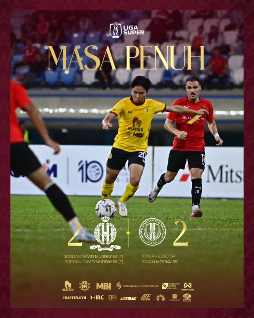 The match ended 2-2, with Negeri Sembilan remaining in sixth place on 12 points — narrowly missing the chance to overtake Terengganu and Selangor in the standings.